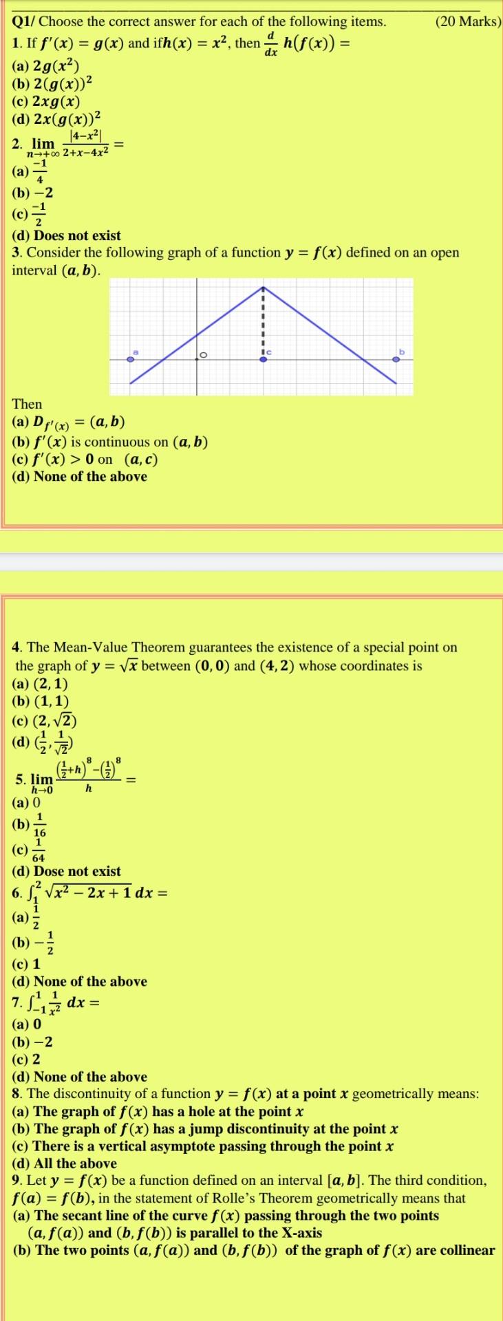Solved Q1 For Each Of The Following Circle Only One Ans Chegg Com